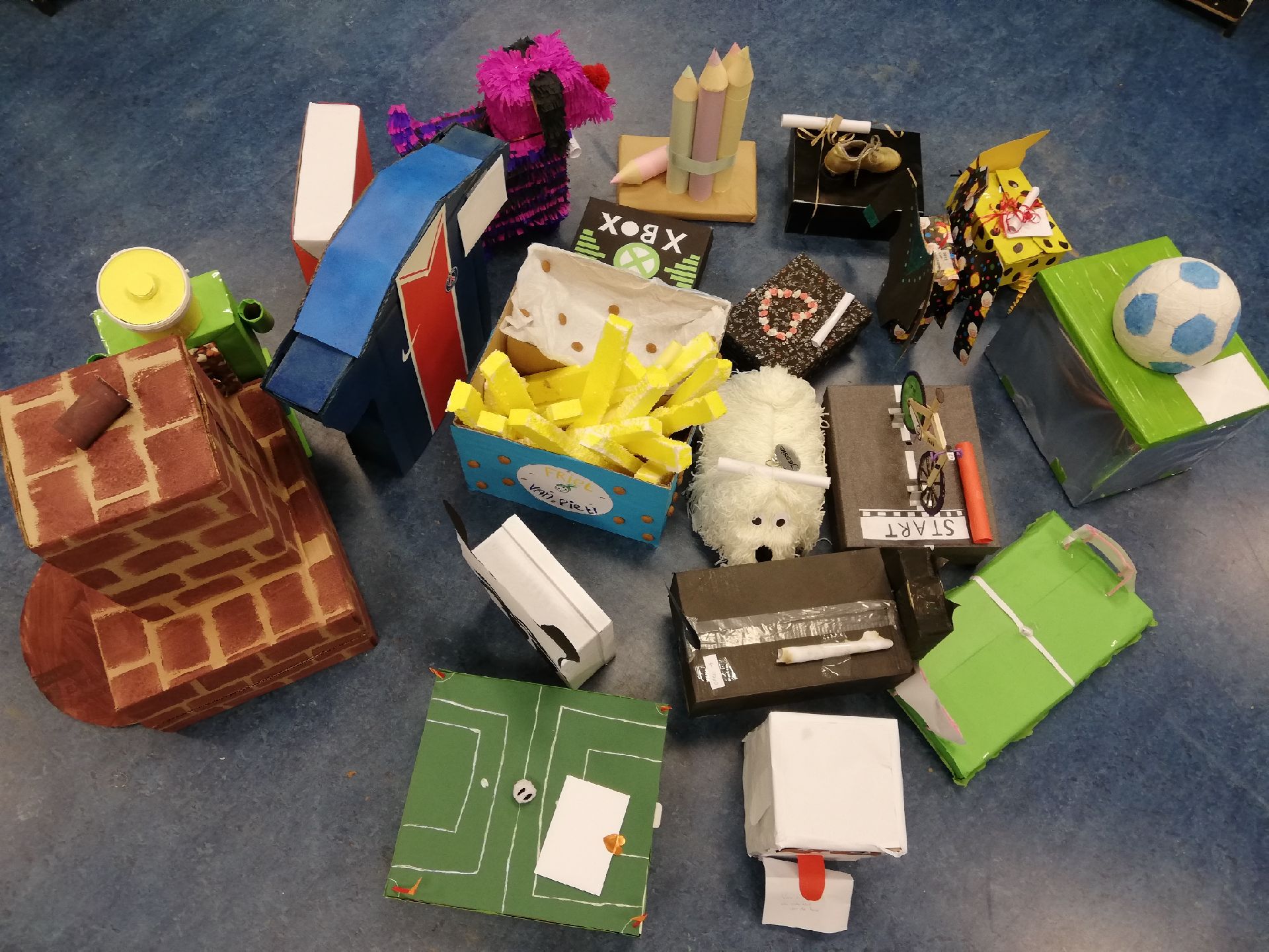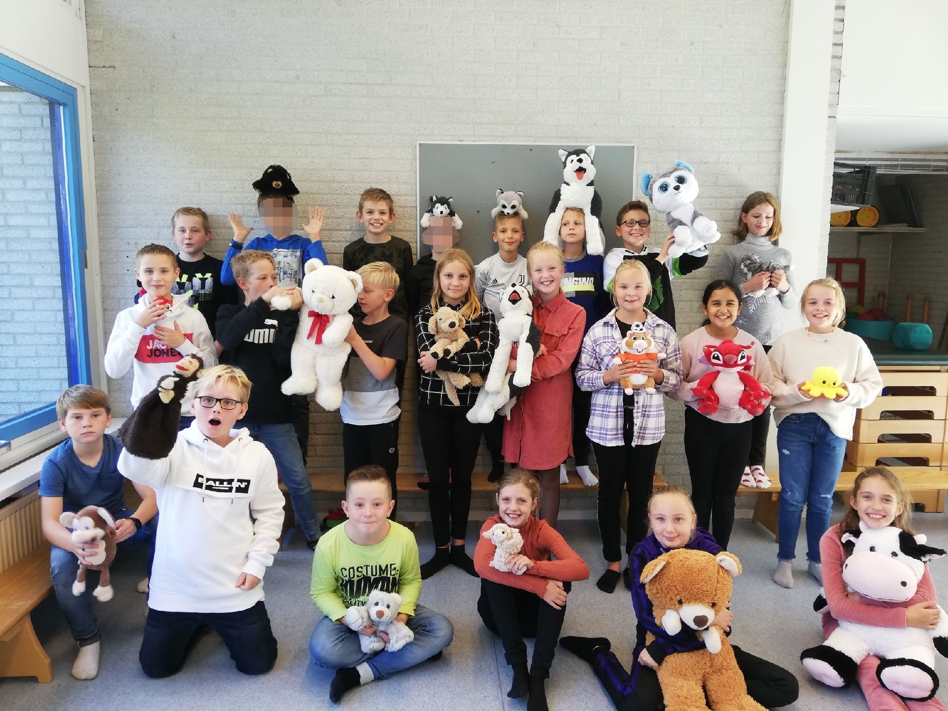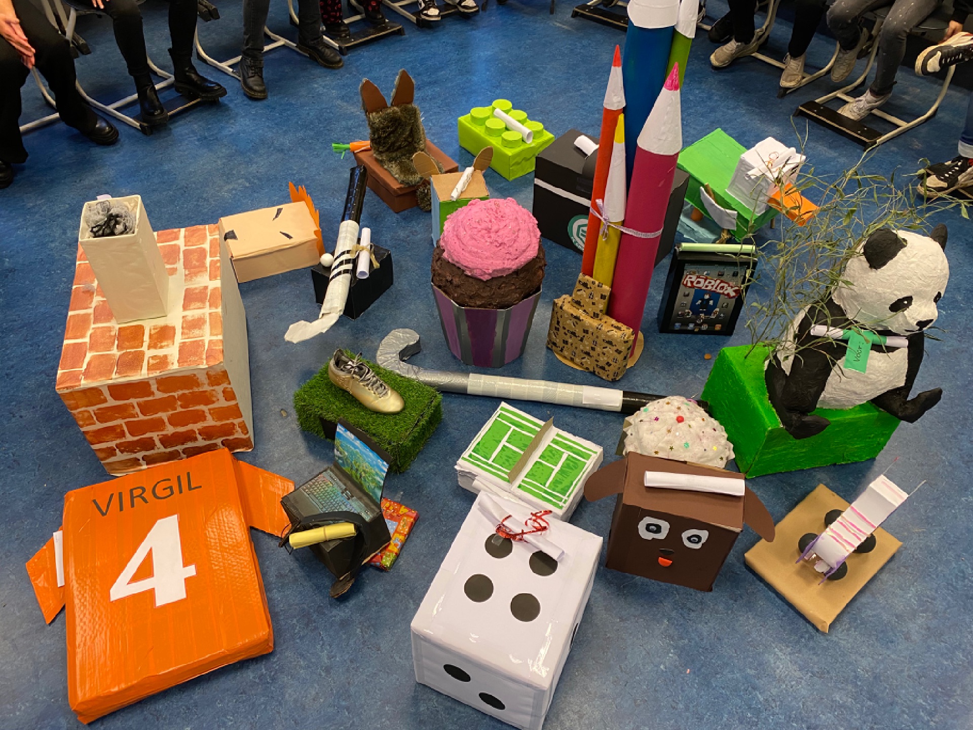Er kwamen 2 vrouwen met hele grote dozen waar blokken in zaten onze hele klas werd in  2 groepen