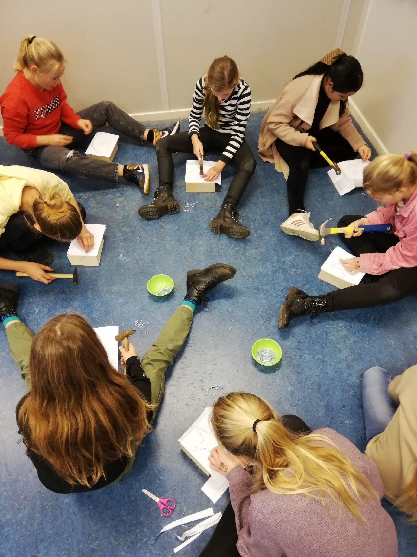De kinderen zijn druk geweest met een hamer, spijkers en wol. Kijk eens wat een mooie resultaten!