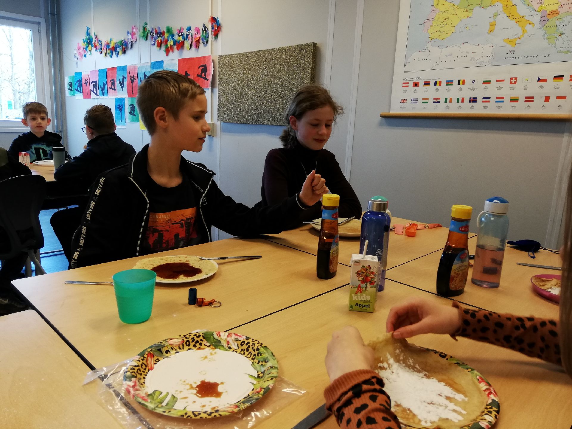 Ouders bedankt voor de heerlijke pannenkoeken. Groep 7b heeft gesmuld!