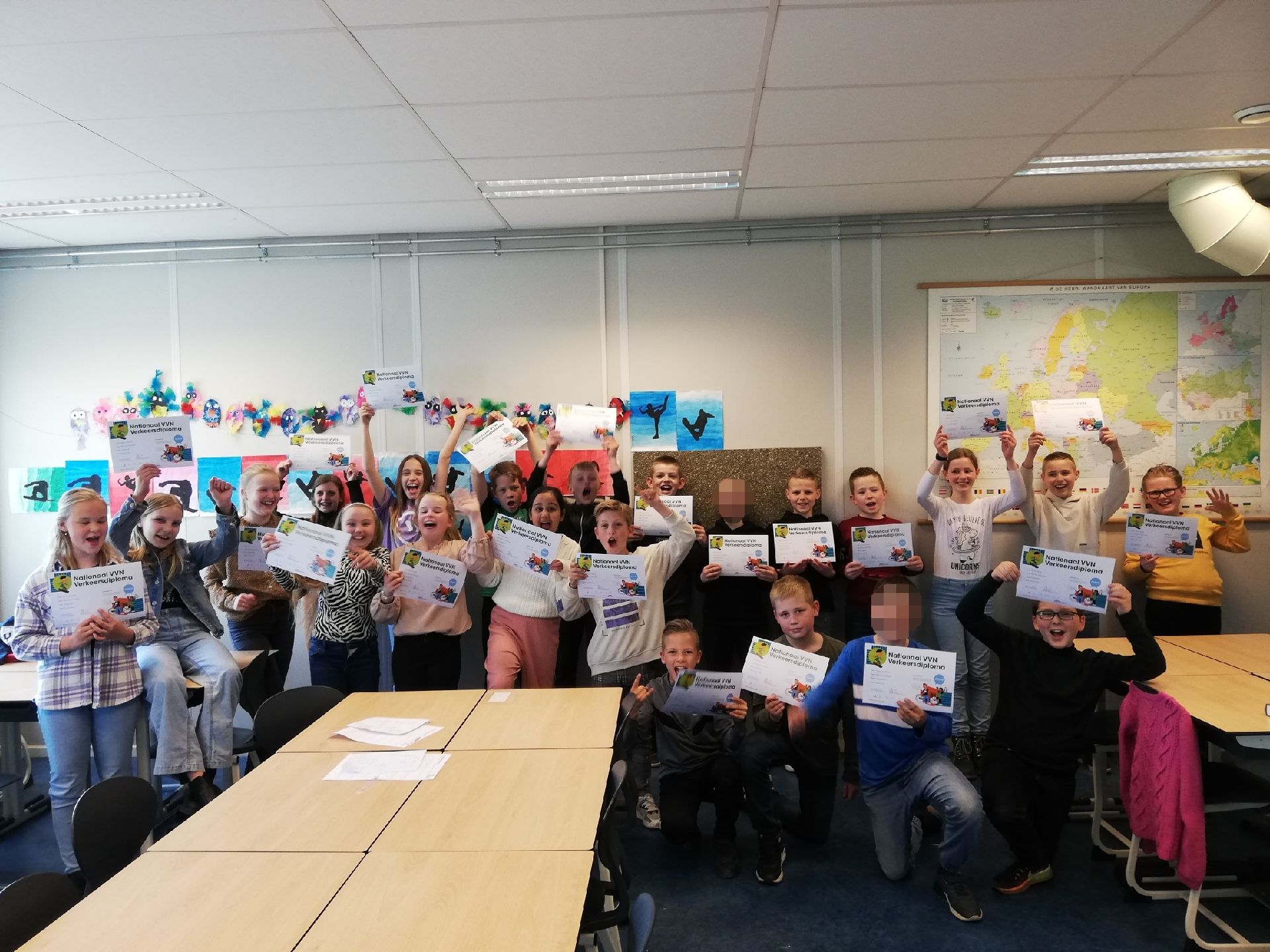 Heel groep 7b is geslaagd voor het verkeersexamen.
