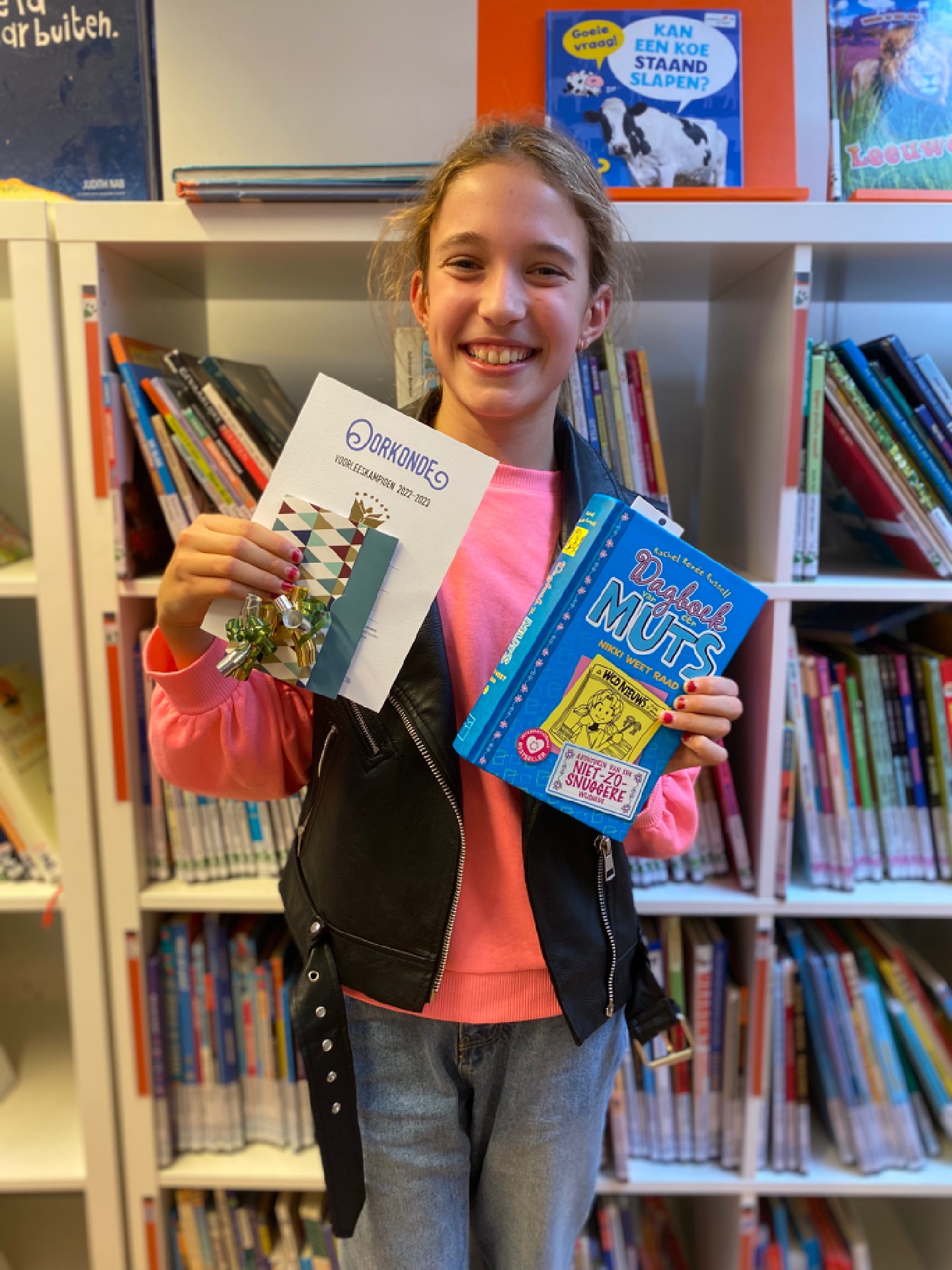 Onze voorleeskampioen Ilda heeft afgelopen donderdag deelgenomen aan de regioronde van Hoogeveen. Ze heeft voorgelezen uit Dagboek van een muts 13 Partystress!