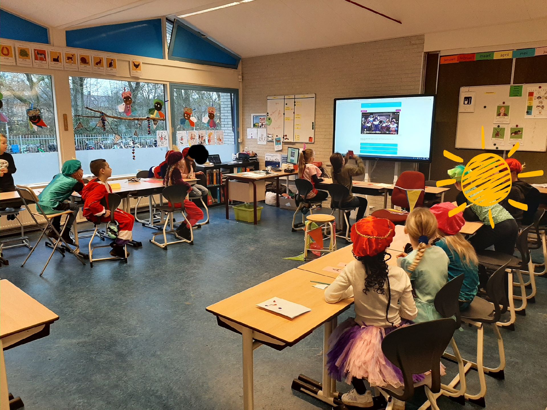 Vandaag gestreden om de titel van voorleeskampioen in gr 5 a en 5b. De winnaar neemt plaats in de jury voor de 'echte' voorleeskampioenschappenin gr 7 en 8.