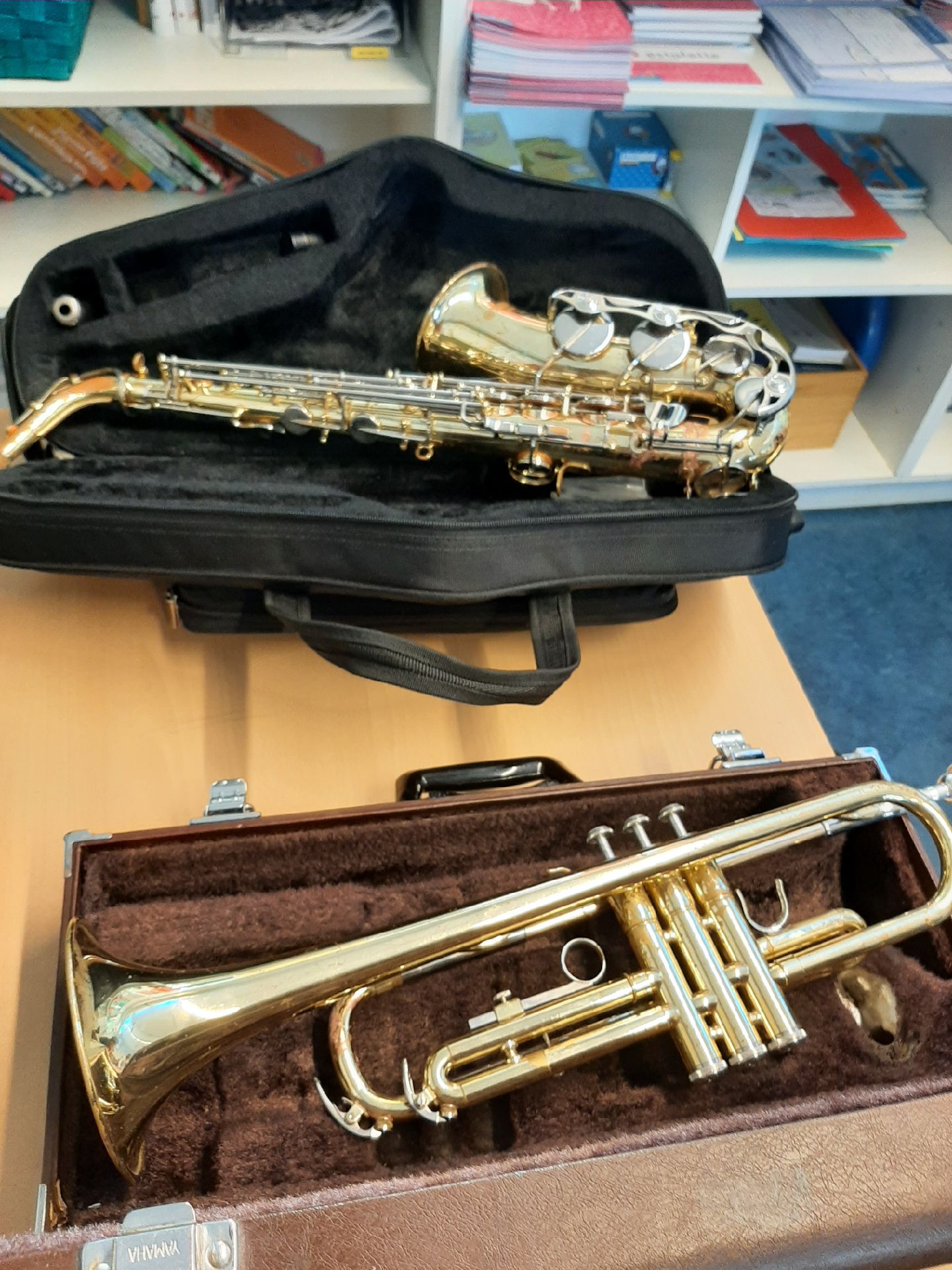 Vandaag hebben de kinderen een muziekles gehad van de Hoogeveense Harmonie. Ze konden kennismaken met verschillende blaasinstrumenten, zoals de dwarsfluit, saxofoon, trompet en