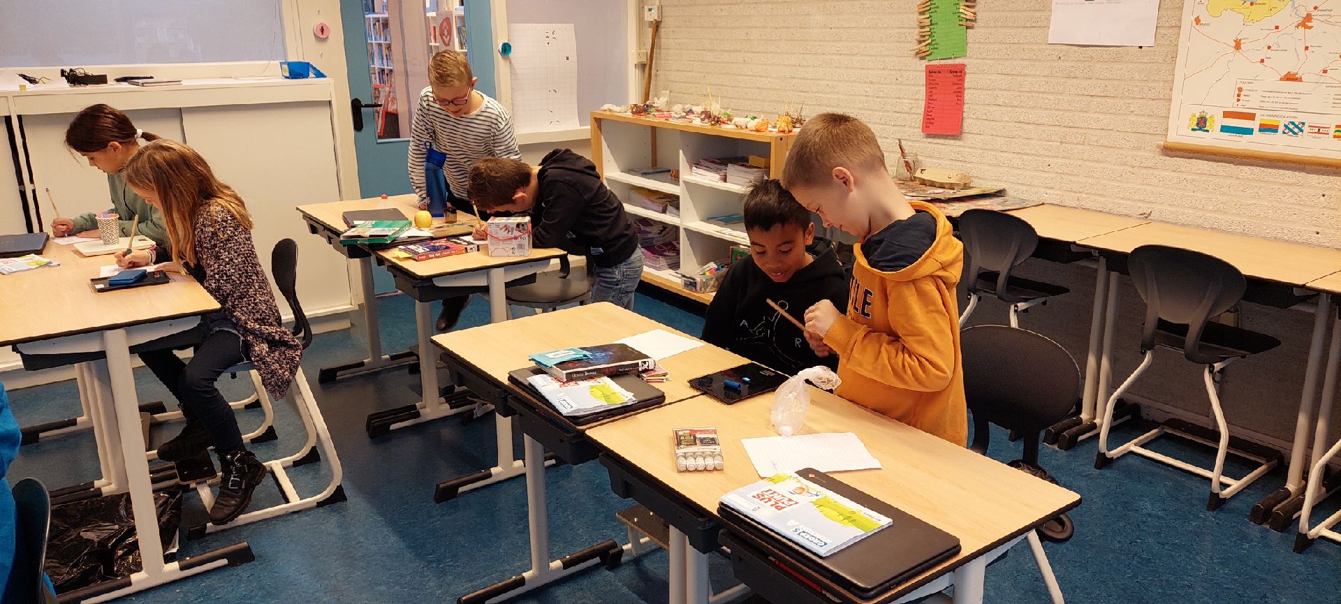 De leerlingen zijn zelf op onderzoek gegaan bij de verschillende opdrachten.
